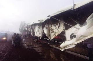 Nevertheless…last 16 December Jacob Zuma delivered a speech in Gopane near Zeerust in the North West where he talked about how evil Apartheid was, how painful the past was for the blacks, how the evil Apartheid whites killed their poor innocent bomb-planting, necklacing terrorists, how the blacks should forgive the evil whites and we should all reconcile, etc, etc…and as the crowd cheered “Zuma, Zuma, Zuma!”…a sudden freak storm came out of nowhere, ripped the tent to shreds, blew it away and sent Zuma running for cover. Thirteen people were injured.